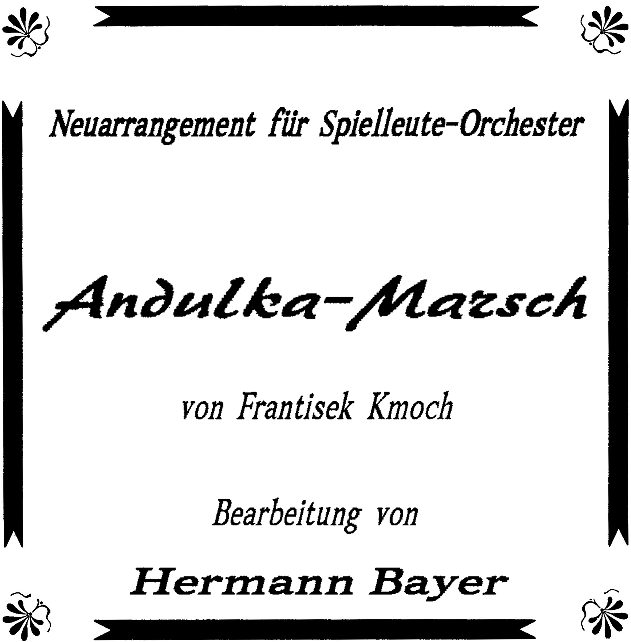 Andulka-Marsch von Frantisek Kmoch Der wohl bekannteste Marsch des böhmischen Komponisten. Arrangement: Hermann Bayer Artikelnummer: 06000800 Preis: 49,00 €